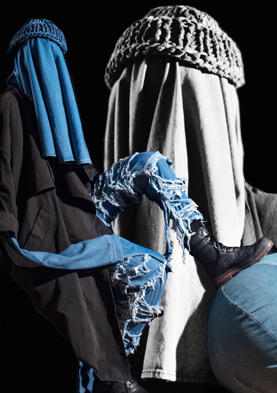 Ein Nonnenhabit, ein Doppelschlafsack, ein riesiger, feinmaschiger Schal – alles vollständig aus Jeansstoff. Man verspürt einen leichten Hippie-Vibe in den spielerischen, oft fast cartoonesken Oversize-Cuts dieses Labels mit Sitz in Los Angeles; doch ist die Freiheit, die die außergewöhnliche Weite der Kleider suggeriert, nicht nostalgisch zu verwechseln mit der sonnengeküssten Proto-Bourgeoisie der sexuellen Revolution. Es geht diesem Durcheinander von Formen vielmehr darum, Jeansstoff aus einzelnen Szenen oder Subkulturen herauszulösen – seien es nun die Kinder der Love Generation oder die ursprünglichen Träger der Jeans, die Levi Strauss & Co. im späten 19. Jahrhundert patentierte. 69 feiert die Verbreitung von Indigo Denim über den ganzen Globus. Die Designerpersönlichkeit dahinter bleibt anonym, was oft theatralisch betont wird, z. B. in der Herbst/Winter-Kollektion 2016: Die Models trugen struppige, SM-artige Masken und verbargen ihre Identitäten hinter einem Wirrwarr aus zerrissenem blauen Denim. Wer will, kann darin eine Antwort sowohl auf die Diamantmasken von Margiela (Verschwiegenheit als Luxus) als auch auf die ähnlich jungen Labels sehen, für die Sichtbarkeit schließlich alles ist. (JG)