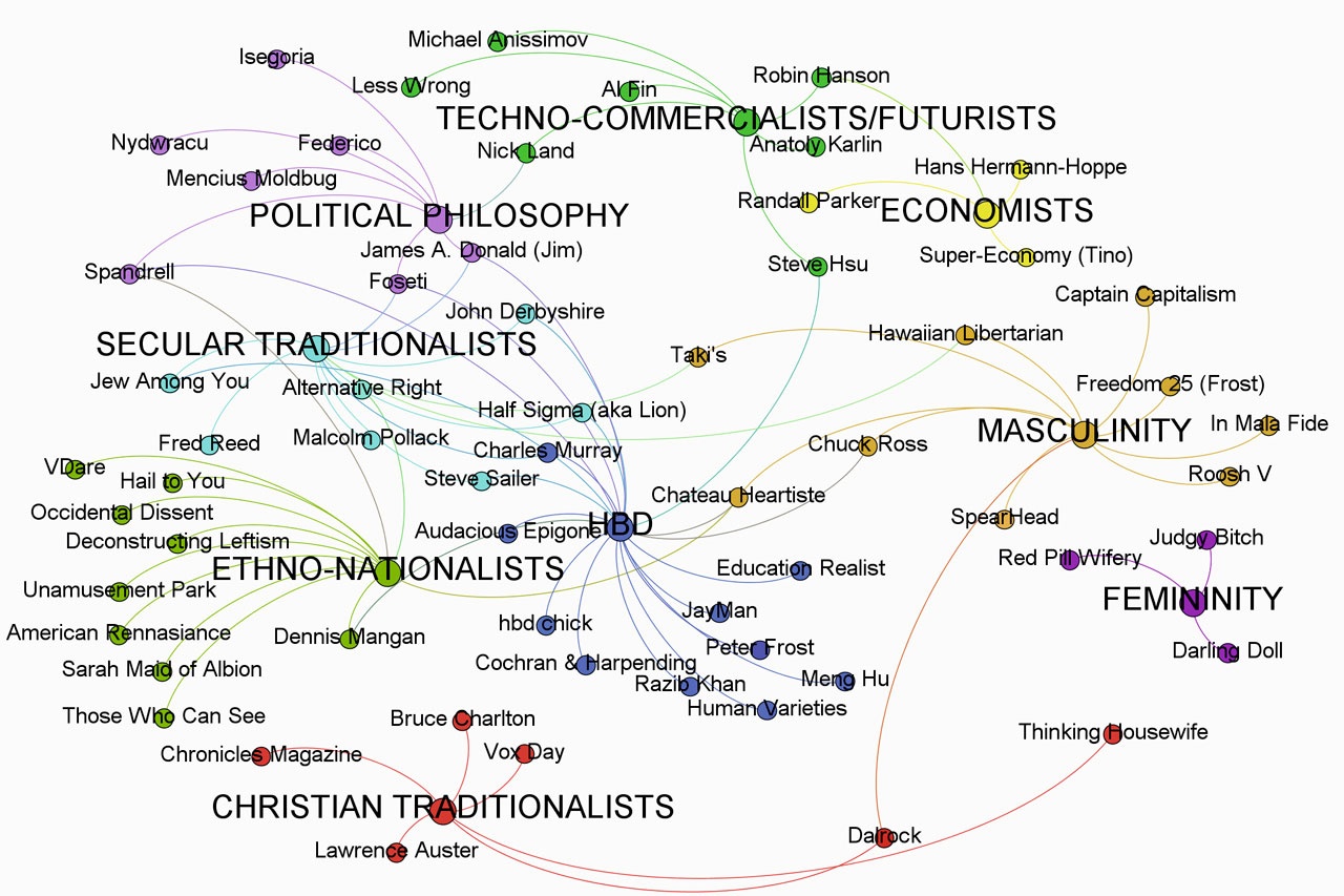 Im Zuge der US-Wahlen 2016 stellte sich heraus, dass die NRx eine Allianz mit einer politischen Bewegung eingegangen war, die sich selbst als „Alt-Right“ (alternative Rechte) bezeichnete (eine lose Koalition von Verfechtern weißer Vorherrschaft, Maskulinisten, Antifeministen, Old-School-Rassisten, Islamophoben, Neomonarchisten und Antisemiten). Der Rassismus der NRx wird durch einen Anschein von Meritokratie rationalisiert, die alternative Rechte ist explizit proweiß, das heißt, beide Bewegungen setzen eine Matrix von Vorherrschaft und Unterwerfung in Kraft. Wer für die Abschaffung demokratischer Rechte und Absicherungen eintritt, sanktioniert damit eine Gesellschaft mit Verfolgung und Diskriminisierung in der einen oder anderen Form. Die Unterscheidung zwischen der alternativen Rechten und dem konventionellen Rechtsradikalismus ist nicht so sehr eine der Inhalte, sondern eine des Stils. Die Alt-Rechte setzt auf Nihilismus, Sarkasmus, auf ein Selbstverständnis als Anti-Establishment, und das neben anderen Modalitäten von Dissidenz, die früher einmal eine Domäne der Linken waren und traditionell mit dem Begriff „alternativ“ assoziiert wurden.