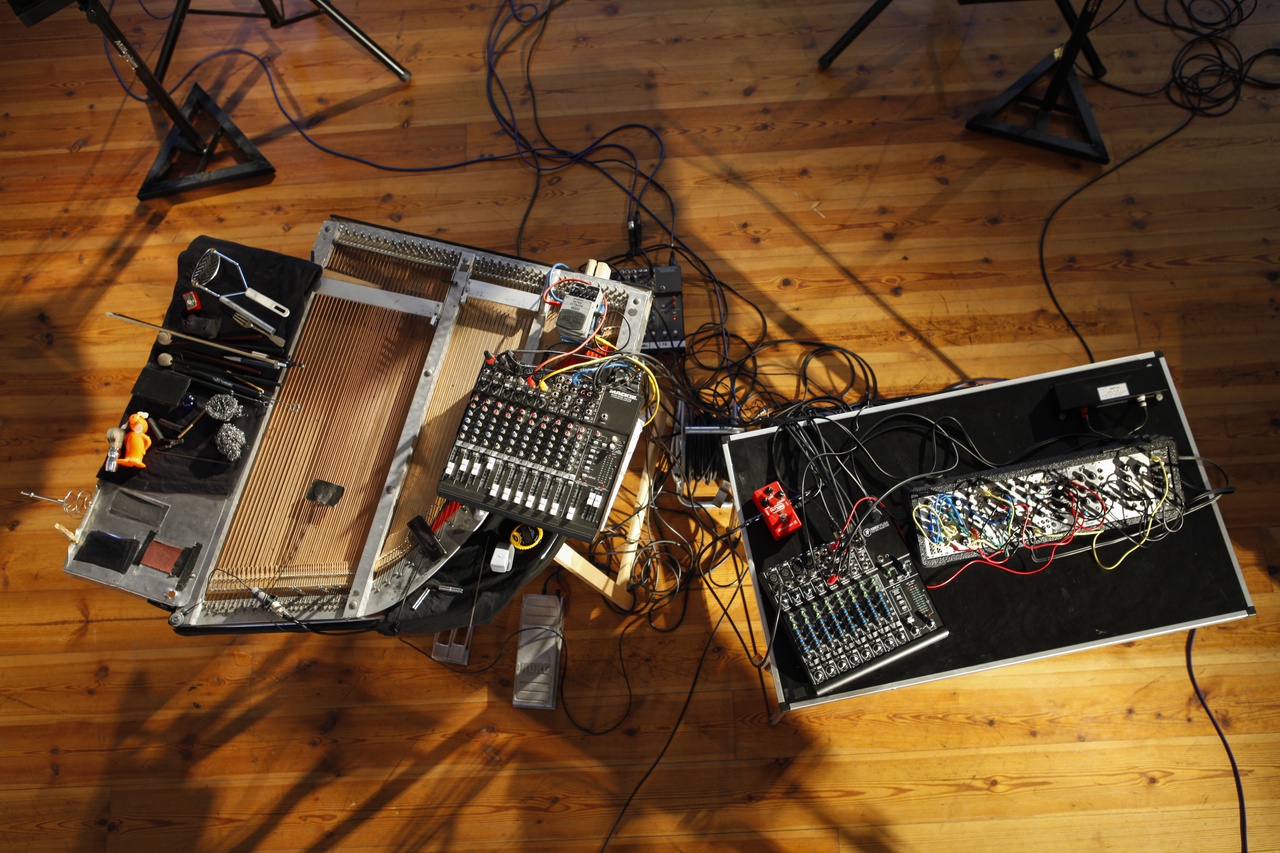 Von einer Klavierwerkstatt bekam ich einen von Holzgehäuse, Tastatur und Mechanik entkleideten Klavierrahmen, der im Jahr 2000 aus Gewichtsgründen in einer verkleinerten und leichteren Aluversion von Bernd Bittmann nachgebaut wurde. Da dieser Nachbau akustisch sehr leise ist, verstärkte ich ihn über ein Mischpult mit diversen Kontaktmikrofonen; dabei entdeckte ich mischpultinterne Feedbacks, die den auf dem Innenklavier entwickelten Soundwelten einen elektronischen Noise-Faktor hinzufügten.