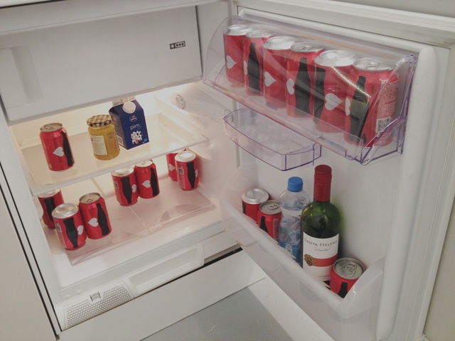 The poster/invite to the show is a photograph of the artist’s laptop sprouting two LED-illuminating fans (powered via a USB connection) that look desperate for attention. Flanked by these manic, hypnotic cyclopean heads, the laptop shows an image of store shelving filled with six-packs of Coca Cola and a Wall’s ice cream fridge nestled in the corner.
