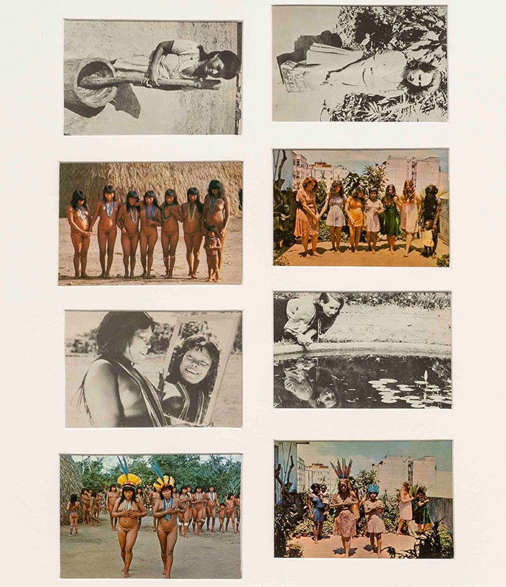 It’s a volatile gesture. These are one pair of images from Anna Bella Geiger’s series Brasil nativo/Brasil alienígena (Native Brazil/Alien Brazil), the work from which the current survey of Geiger’s work at the Museu de Arte de São Paulo takes its title. Along with her daughter and friends, Geiger restaged scenes of the Bororo people depicted on postcards from the mainstream Brazilian news magazine Manchete. She made them between 1976–77, about a decade into the 21-year rule of Brazil’s military dictatorship, during which period the country’s indigenous communities were subjected to some of the government’s most horrific crimes.