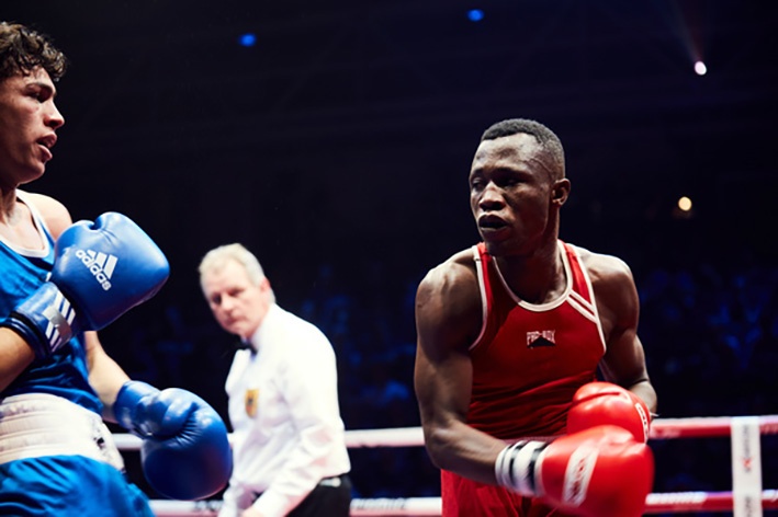 Titelbild: Boxkampf zwischen der Boxabteilung des TSV 1860 München, dem Attoh Quashie Boxing Gym und der Charles Quartey Boxing Foundation aus Ghana auf dem Festival "Friendly Confrontations", Münchner Kammerspiele, Januar 2020