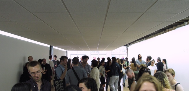 In this, “Return to Problem” seemed to play directly with some of the issues laid out in Merlin Carpenter’s “The Opening” series (the first iteration having been staged at Reena Spaulings in 2007). In Carpenter’s show, a near-empty gallery was equipped for a cocktail party, which, near its end, Carpenter “interrupted” by painting. Across several white canvases that hung on the walls, he wrote lines like “Die Collector Scum,” and, “Relax, it’s only a crap Reena Spaulings show.” Lehan’s arrangement was a markedly classed down version – the alcohol wasn’t poured into glasses over a white tablecloth, but scooped from the plastic containers. And Lehan’s reduction of Carpenter's piano-soundtracked cocktail affair had no correlating crisis-finale moment; “Discussion Island” isn’t interrupted by brash callouts.