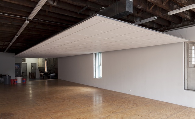 Twentieth century critiques of contemporary life frequently focused on banality. In Yevgeny Zamyatin’s We, for example, or Adorno’s Minima Moralia, or the Wachowskis’ The Matrix, we are shown organized society voiding some essential marker of the vitality of lived experience – numbers are given instead of names, leisure time becomes the requisite social labor of “networking,” days are spent in office cubicles. In Ed Lehan’s first New York solo show, “Return to Problem,” it is perhaps this refrain that was concretized in the drop ceiling that the London-based artist had installed at Reena Spaulings’ Lower East Side gallery.