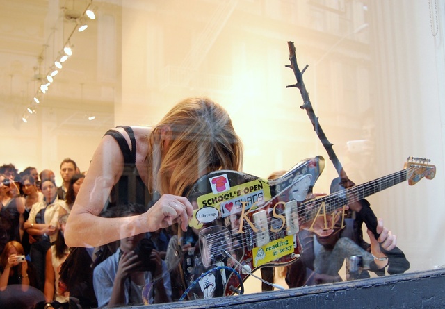 If it’s possible that the best “anti-rock memoir” – a term Gordon has used in interviews regarding her book – would have been no memoir at all, purists should note that Girl in a Band is at least not called Absolute Glittery Sonic Chaos, Death Fuck Kill Rodarte, Pussy Galore Police Death or even Get Rid of Yr Dark Star Core Sonic Death. The obvious commercial decision here on the part of the publisher would have likely been to enlist a sort of resurrected golem of late ’80s Kim Gordon – someone who wore sunglasses indoors during TV interviews and expertly generated soundbites that made the media appear uncool – to hack out a scene-driven tell-all about no-wave, grunge, the art and fashion worlds of the 1980s and ’90s – possibly stamping Lena Dunham praise on the jacket… or Dan Graham praise? Grimes praise? One need not look any further than Madonna’s Instagram and newfound enthusiasm for the word “bitch,” the semantic field of pole-dancing, and hashtags like #bitchimmadonna, #youmaykissthehand or #bitchimwearingalexanderwang to witness the awkward spectacle of a star aggressively updating their brand to current standards and clinging to past glory. Girl in a Band instead presents a less edgy, grown-up version of Kim Gordon – a rock and roll character whose biggest vices are the occasional Xanax and a good wine – unglamorous and earnest; the simple testimony of a woman who, after successfully juggling the roles of Sonic Youth front woman, fashion icon, mom, entrepreneur, and artist in her own right, is now looking to the future.