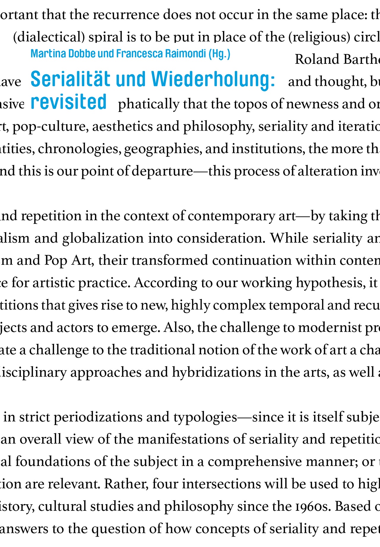 Serialität und Wiederholung: revisited, hg. von Martina Dobbe/Francesca Raimondi, Berlin: August Verlag, 2021, 220 Seiten.