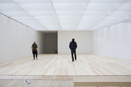 Neuenschwander’s effort is outlined in Quem vem lá sou eu / Alarm Floor (2005), a large in situ installation, co-conceived in collaboration with the musicians’ duo O Grivo from Belo Horizonte, in which big pine floorboards are walked on by viewers whose barefoot steps emit sounds as if they played the keys of an extra-sized prepared piano. The piece is inspired by the “nightingale floor”, a 17th century system of flooring -made of clamps and nails underneath the boards to create friction- found in Japanese temples and palaces as a physical alarm system making it impossible to enter some areas without emitting squeaky sounds. Here the dynamic bodily experience of Neuenschwander’s performing viewers is directed towards producing melodious sensations out of their musical skilfulness achieved by playing the boards turned into instruments by way of cans, plastic cups and metal rods positioned underneath. On the other hand, in the video The Tenant (2010), shot in collaboration with filmmaker Cao Guimaraes, this kind of physical engagement is replaced by a static, quasi hypnotic state induced in the audience by the contemplation of the journey of a soap bubble filled with helium gas, relentlessly monitored by the camera’s close and seductive scrutiny inside an empty dwelling under renovation. In his theory about the spatiality of one’s body and motility, French philosopher Maurice Merleau-Ponty wrote that movement depends on performing a “motor intentionality” established by a balance between voluntary reactions._3 In these two works, intentionality is revealed in the non-hierarchic relation between physical and mental motion, lifting the viewers’ embodied knowledge of basic acts, like walking or following an object with the mind, from their everyday commonplaceness to offer them a new temporary meaning within the symbolic realm of the exhibition.