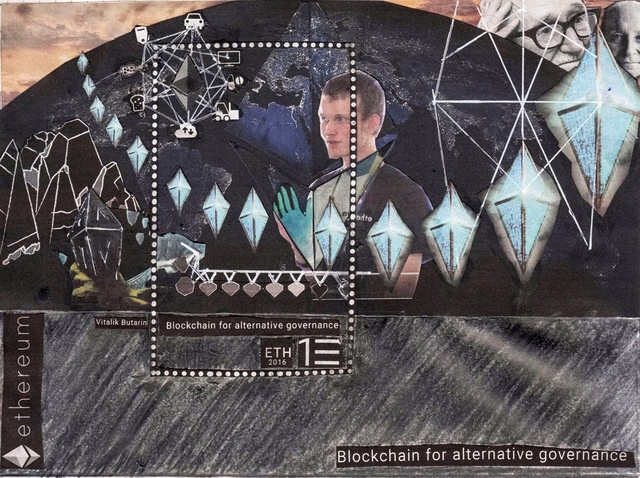 | [1] | Simon Denny, Entwurf für "Ethereum (Vitalik Butarin) 1 ETH postage stamp, featuring Linda Kantchev," (Ethereum Briefmarke) 2016. |