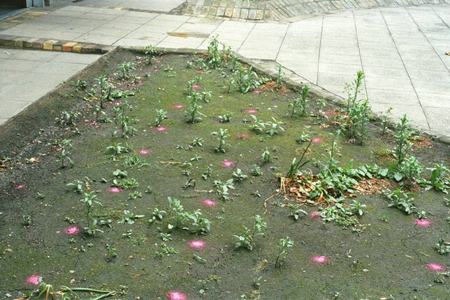 Plant suggestion, 255-279 Cambridge Heath Road, in front of Tower Hamlets Council Office, 2003-06, Ausstellungsansicht, Between Bridges, 2006