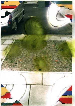 Gefragt, wie es denn dazu käme, dass er seine Praxis von Eingriffen im Außenraum um klassische Atelierarbeit erweitert habe, antwortete Breuer, dass seine Arbeiten im städtischen Raum den Umständen geschuldet waren, dass er nun einmal in London oder Paris oder Tokyo lebte und arbeiten wollte aber kein Atelier hatte. Nun hat er eins und macht Kopierbilder, von denen einige im Atelier zu sehen waren und auf die der Farbkopierer im Flur seines Ateliers bereits hindeutete. Diese beruhen zumeist auf von ihm fotografisch festgehaltene Beobachtungen im städtischen Raum bzw. auf Dokumentationfotografien seiner Eingriffe in diesen. Über die Aufnahmen legt er per Computer Kompositionen, die sich beispielsweise an Kandinsky oder Katherine McCoy anlehnen, und druckt sie mit dem Kopierer aus. Der Kopiervorgang wird jedoch vor dem Fixieren unterbrochen, um die Kopierfarbe und damit die Aufnahmen plus die sie überlagernden Kompositionen zu vermalen. Beendet wird dieser Prozess wiederum durch den Fixiervorgang im Kopierer. Die den Kopierbildern zugrunde liegenden Aufnahmen zeigen Motive wie Pfosten, die Breuer in London aufgefallen sind, da die an ihnen üblicherweise angebrachten (Verkehrs)Schilder fehlten. Das ist zunächst nur eine Beobachtung im städtischen Raum, wie Breuer sie laufend zu machen scheint. Und erst in der Beschäftigung mit ihnen, im Nachdenken über deren möglichen Hintergründe oder durch Gespräche entschlüsseln sie sich ihm. So werden etwa die Schilder von Kleinkriminellen abgeschraubt, um die an den Pfosten angeschlossenen Fahrräder besser stehlen zu können. Man kann sie so einfach herrüberheben. Klauen also auf höchstem Niveau. Erst wenn die Phänomene sich entschlüsselt haben oder sich Breuers Interesse für sie bestätigt, werden sie in seine künstlerische Produktion eingeschleust. Es ist eben nicht gleichgültig, was sich angeeignet wird. Und auch nicht alles kann zum Ausgangspunkt der Arbeit werden. Breuer nennt dieses Einschleusen die Dinge beugen und meint damit sie sich anzueignen, indem man sie bearbeitet oder dekontextualisiert. Seine Arbeiten lassen sich demnach nicht auf den Akt des Aufzeigens oder Problematisierens reduzieren. Ihnen wohnt kein explizit aufklärerischer oder pädagogischer Impetus inne. Im Gegenteil. Die angeeigneten Themen und Objekte werden zum Teil so stark gebeugt, dass sie komplett in den Hintergrund treten. Dann verselbstständigt sich der malerische Prozess und die Frage nach der einzuschreibenden Komposition steht im Vordergrund. Breuers Arbeiten sind dabei Malerei im weitesten Sinne. Während meines Besuches stand beispielsweise eine Baustellenabgrenzung im Atelier, die er gerade verbogen hatte und in die er noch ein Loch einfügen will. Das unter Vorbehalt. Soweit die Pläne.