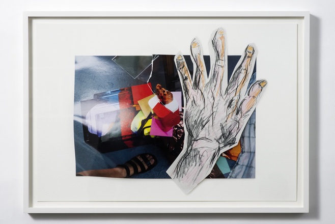 Die amerikanisch-kanadische Künstlerin Jessica Stockholder ist mit ortsspezifischen Arbeiten bekannt geworden, die etablierte Grenzlinien institutioneller wie formaler Art untergraben. Ihre disziplinenübergreifende Praxis bezieht zahlreiche Materialien und Techniken ein. Ein wiederkehrendes Motiv in Stockholders jüngeren Arbeiten ist die Schaffung von Mikroräumen innerhalb des Blickfelds durch mehrere übereinandergeschichtete Bilder, die den Bildrahmen aufbrechen und in den weiteren Kontext hinausschieben. Wie bei ihren bekannteren Werken findet sich beinahe immer ein Objet-trouvé-haftes Element, eine Entscheidung, die spontan gefallen ist. Die Vermischung von Absicht und Zufälligkeit ist eines von mehreren Organisationsprinzipienin Stockholders Installationen und räumlichen Interventionen.In „Choices“, der ersten Edition Stockholders für TEXTE ZUR KUNST, sind diese Hauptmerkmale ihres viel gerühmten Werks deutlich ausgeprägt. Der Archivpigmentdruck zeigt ein verzogenes Foto, das noch den Glanz des Originals einfängt, dabei aber auf mattem Papier gedruckt ist. Daneben gibt es einen ölbemalten Drucker, Papierstücke, Stoff, Spiegel und Fliesen. Der durch die gestapelten Bilder hervorgerufene Raum wird durch einen bis in die Bildmitte reichenden Riss unterbrochen. Auf die Fotocollage legte Stockholder eine langgezogene und ausgeschnittene Hand. Zusammen mit dem Bild eines Fußes, der in der linken unteren Ecke des Fotos die Szenerie betritt, weisen beide Körperteile auf die Verschmelzung des menschlichen Körpers mit den Abbildungen der industriell und handgefertigten Objekte hin. Wie bei vielen von Stockholders Arbeiten in größeren Formaten ist das Bild Ergebnis einer radikalen Öffnung hin zur Welt und zu uns als Betrachter*innen.