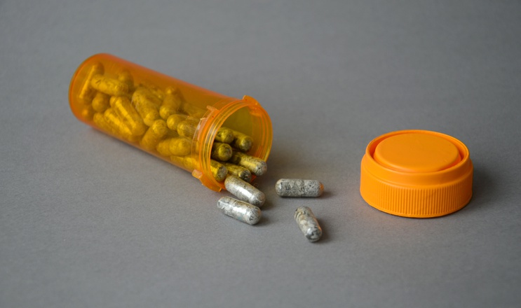 Pillendose aus Kunststoff, Sprühfarbe, Gelkapseln, Seiten aus der „New York Times", 9,4 × 4,1 cm, Auflage: 60 + 20 A.P., nummeriertes und signiertes Zertifikat, € 350,– zzgl. Versand.