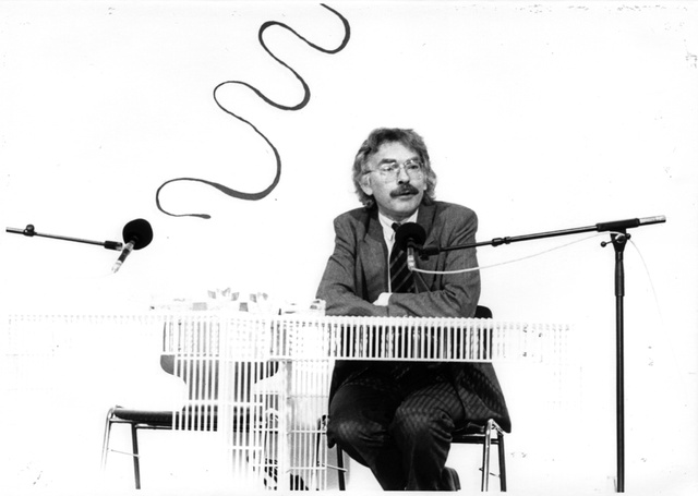 Friedrich Kittler lecturing in Graz on the occasion of Steirischer Herbst "Chaos und Ordnung" (Chaos and Order), 1989